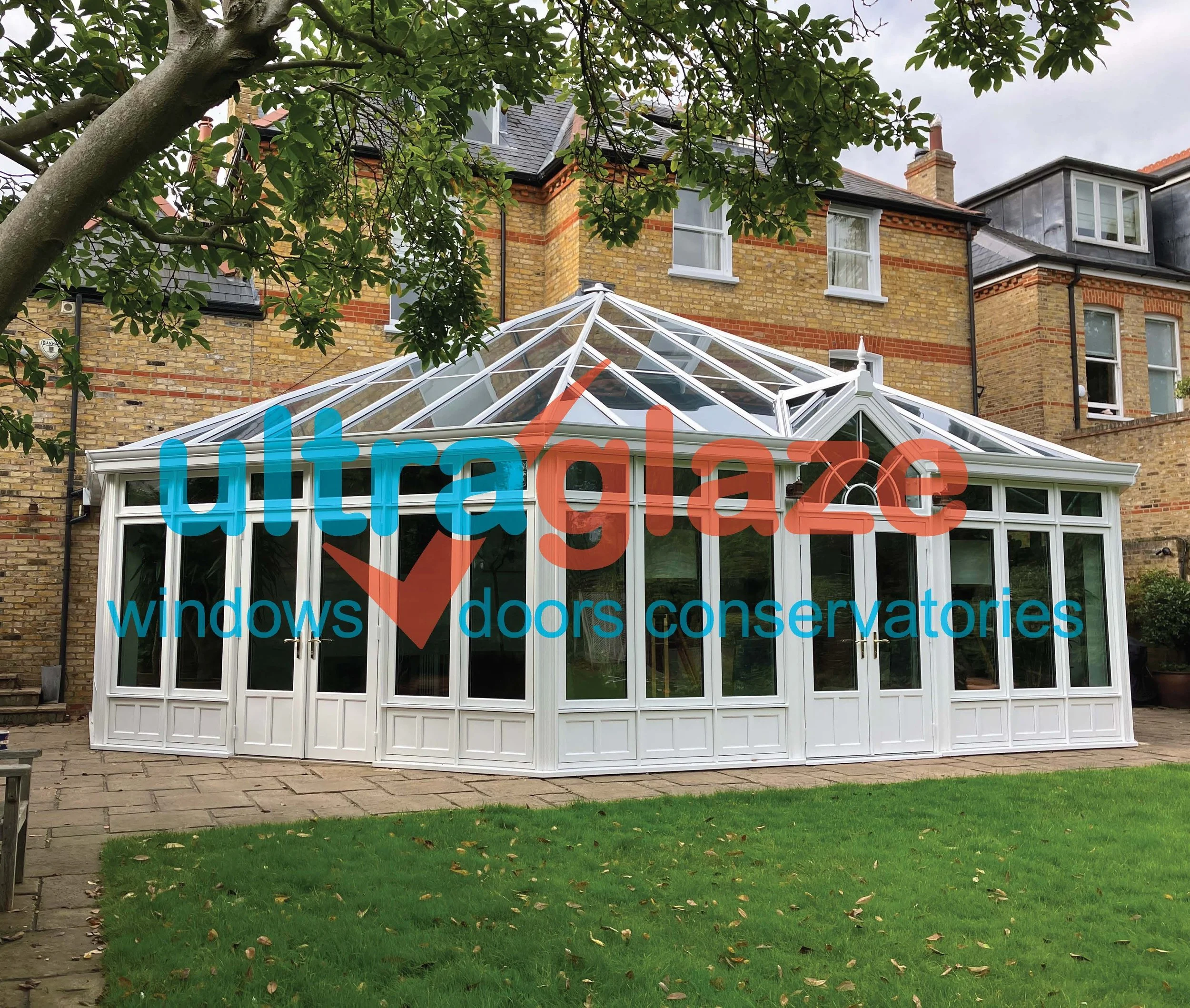 Two styles in one – ultimate space Combines a lean-to (long side) with a Victorian or Edwardian round end.